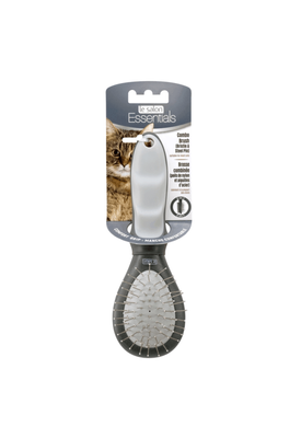 A 2-in-1 grooming brush that removes dead hair while penetrating deep into the coat to lift out dirt and debris. Le Salon Essentials Cat Bristle/Steel Pin Combo Brush, Small. Gray nylon bristles, steel pins, gray pad, charcoal handle. Suitable for the general grooming of most breeds.